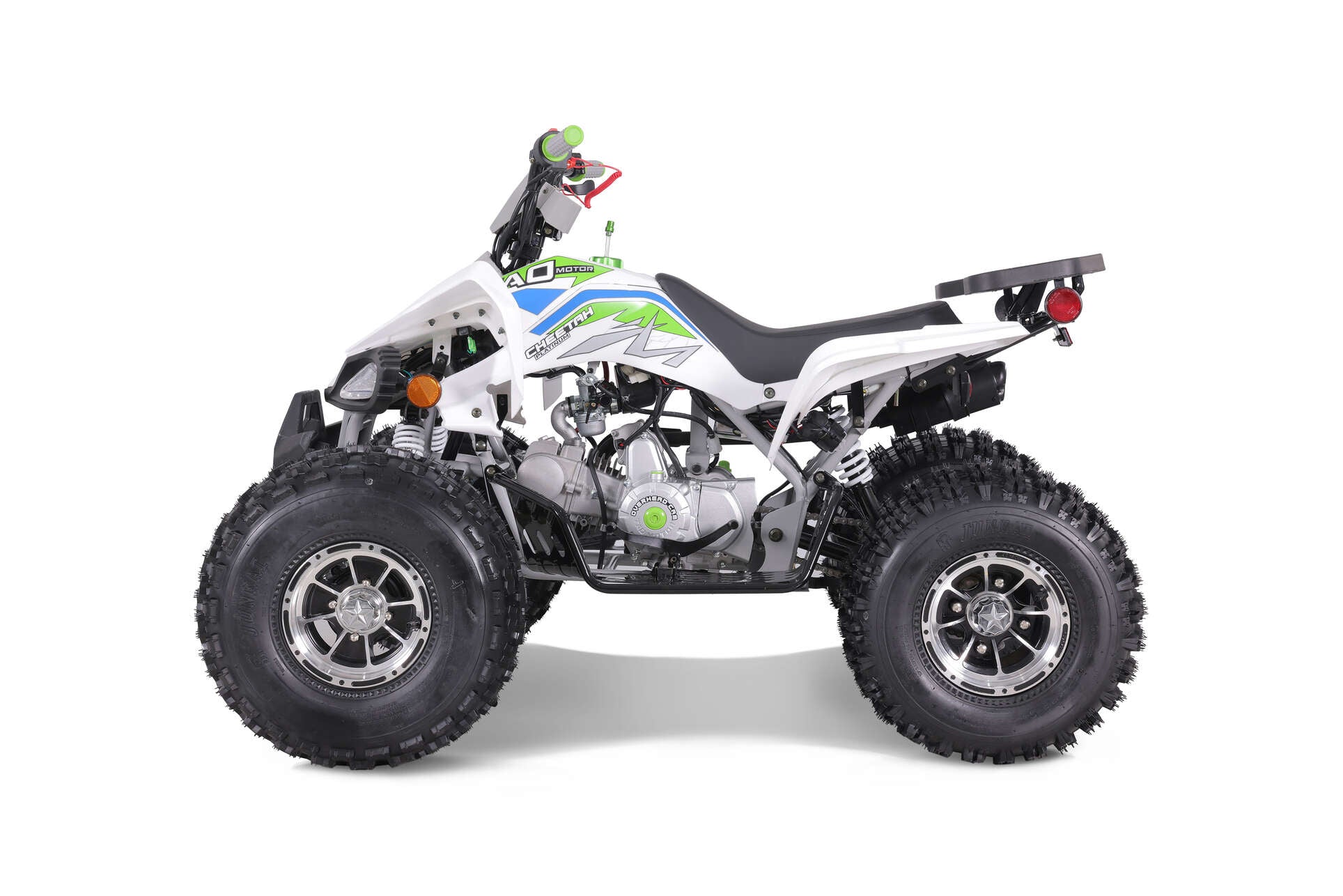 The Tao Motor Cheetah Platinum brings sport-inspired performance and upgraded technology to the mid-size ATV class. Designed for riders seeking a mix of style, comfort, and control, this ATV stands out with its fully automatic 120cc 4-stroke engine and advanced suspension system. Built for both trail riding and recreational use, the Cheetah Platinum combines power, precision, and premium aesthetics in one package.