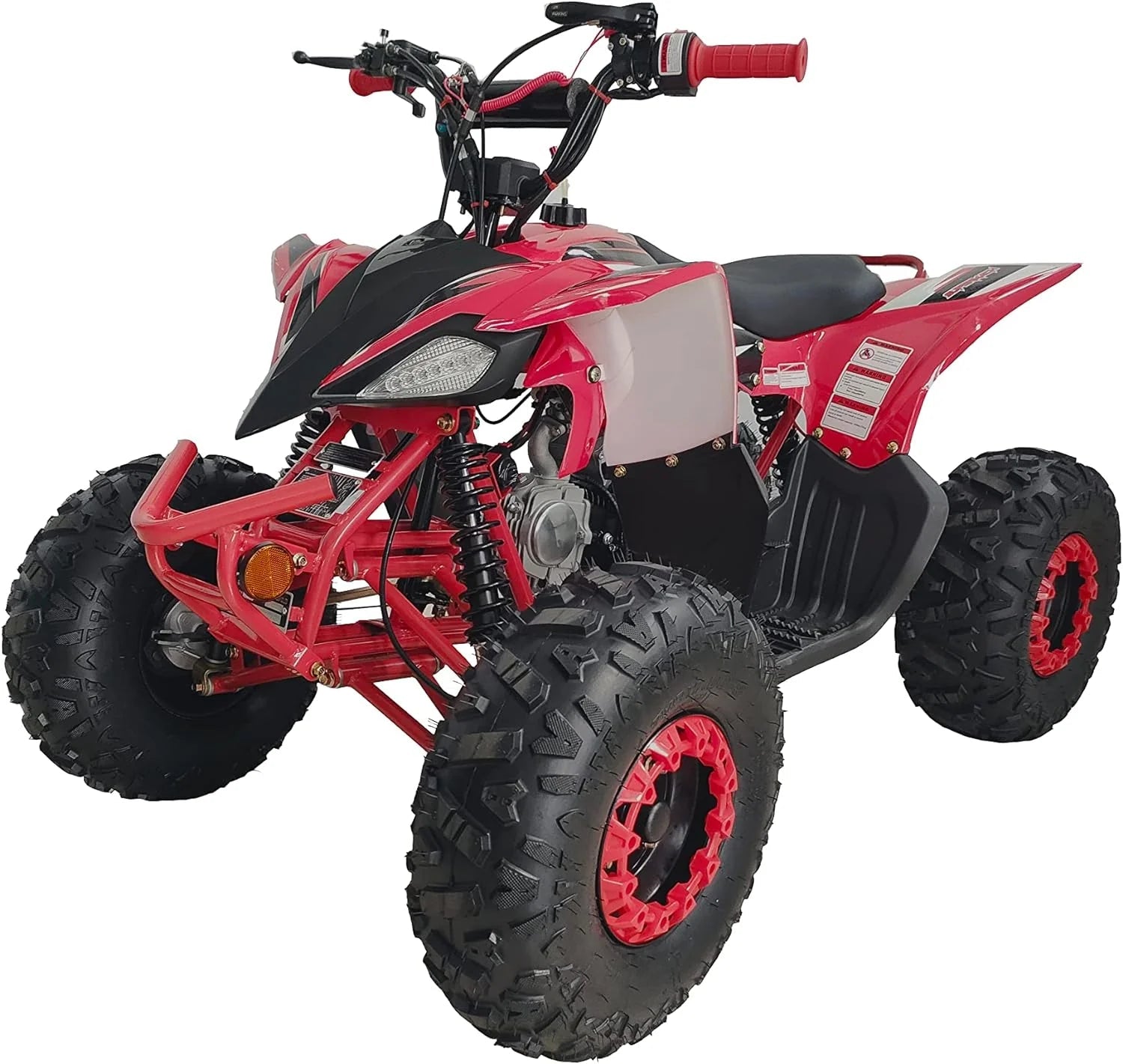 With big 19-inch front and 18-inch rear tires, the ATV provides excellent traction and stability. It includes LED headlights, tail light, and front/rear braking system (drum front, disc rear) for safety in all conditions. Built with a strong frame, a max load of 165 lbs, and a top speed of 35+ mph, it’s ideal for youth riders looking for a step-up from entry-level models.