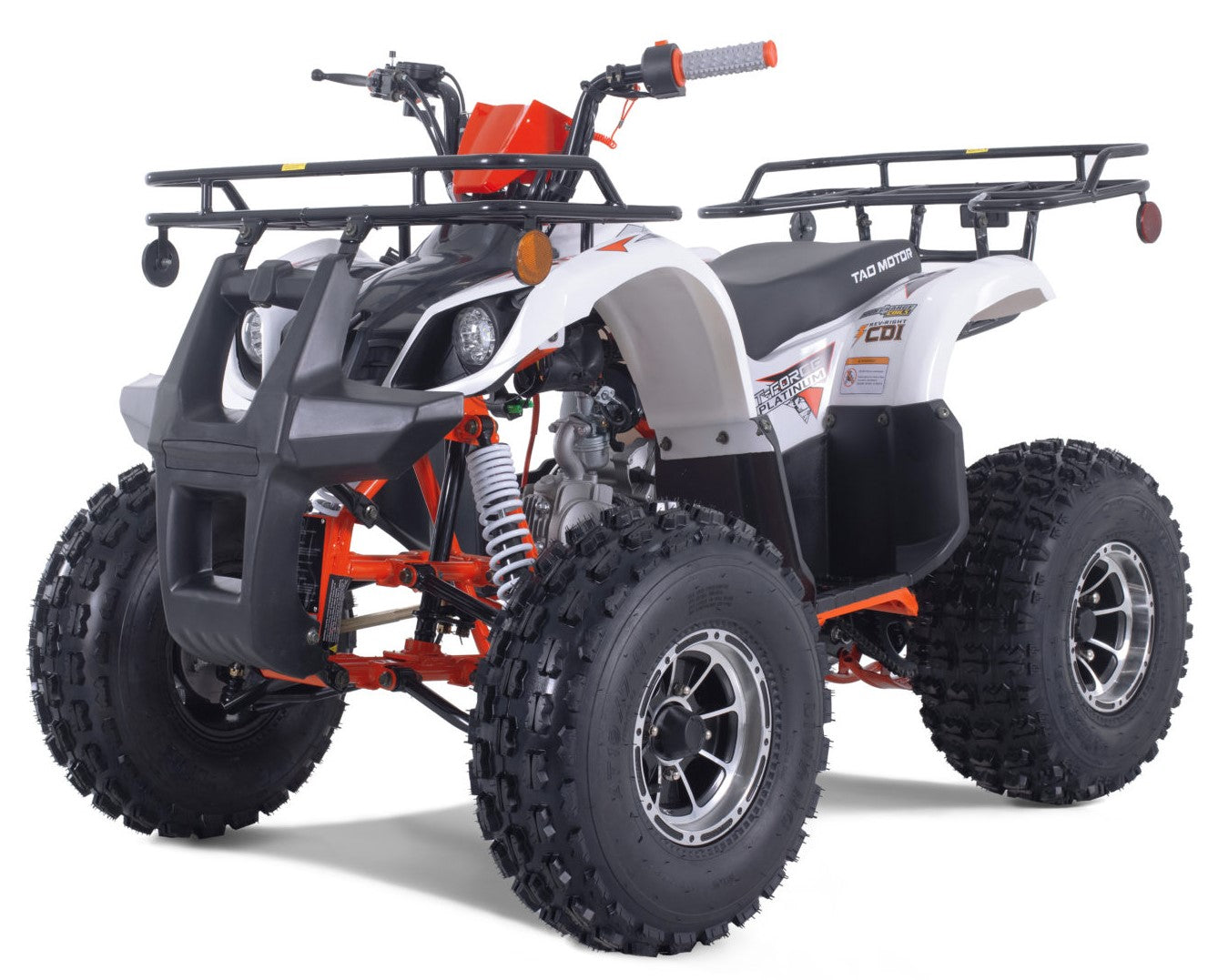 The HHH T-FORCE PLATINUM 120cc ATV from TaoTao is a youth utility-style gas quad built for safety, comfort, and style. Featuring a 120cc, air-cooled, 4-stroke single-cylinder engine with fully automatic transmission and reverse (D-N-R), it delivers smooth riding and easy operation.