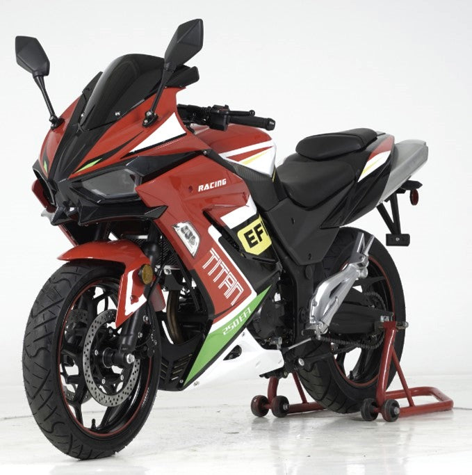 The HHH Vitacci TITAN250 EFI is a fuel-injected 250cc sports bike designed for adults who want performance, control, and street-legal compliance. Powered by a Zongshen 250cc single-cylinder, oil-cooled engine with balancer, it delivers 12 kW at 7500 rpm and 18 Nm of torque at 5500 rpm, reaching top speeds of 75 mph.
