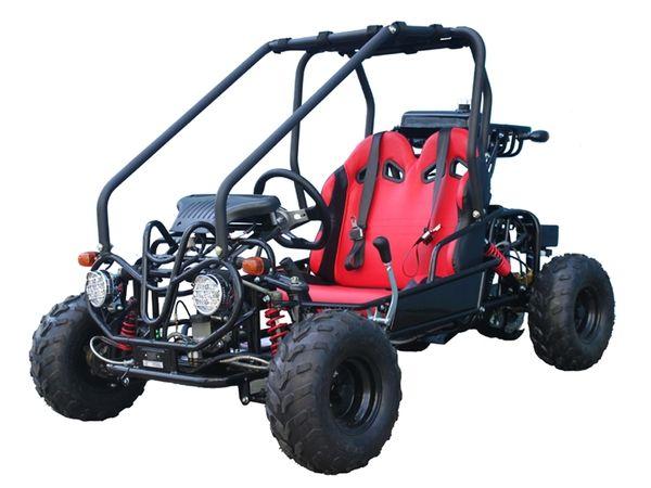 Built with safety and reliability in mind, the GK110 includes a full roll cage, hydraulic disc brakes on both front and rear wheels, and a low 13-inch seat height for stability. The automatic transmission with reverse ensures simple operation for young riders, while the electric start provides hassle-free ignition.