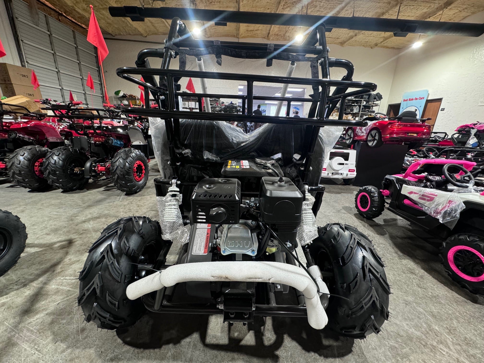 Its independent front hydraulic shocks and dual rear hydraulic suspension ensure a smooth ride on trails, dirt paths, or open fields. Designed with safety in mind, it includes 4-point seat belts, a padded roll cage, and an emergency kill switch. The adjustable seat makes it comfortable for both kids and adults, and the foot-operated hydraulic disc brakes provide reliable stopping power.