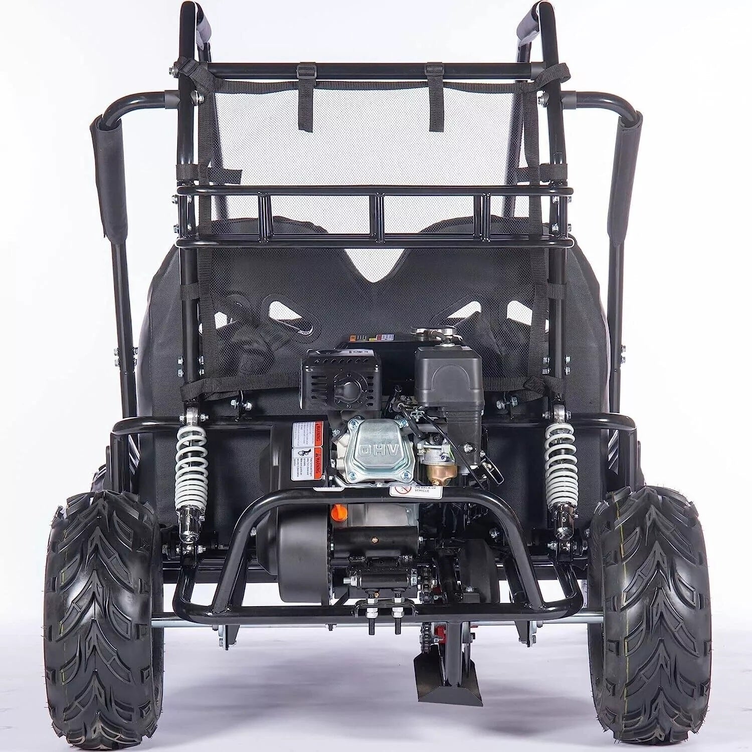 The HHH 200cc 2-Seater Go-Kart is built for outdoor fun and performance. Featuring a 4-stroke, air-cooled 200cc engine, this go-kart offers dependable power and smooth acceleration through its automatic CVT transmission and centrifugal clutch system. The pull-start ignition makes it easy to start, while the chain drive provides solid power transfer and durability across rough terrain.