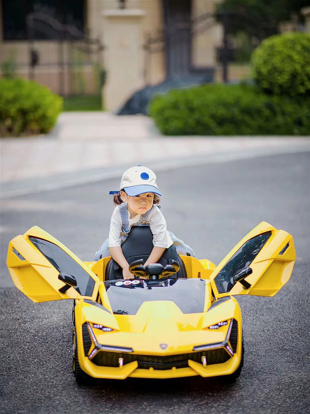 The Lamborghini Style Ride-On Car is a premium one-seater toy car designed for kids aged 1–6 years (or younger under adult supervision). ASTM F963 compliant, this ride-on provides a safe and entertaining experience with a maximum rider weight of 100 lbs. Key features include fully functioning butterfly doors, a race car style steering wheel, and a rocking mode that gently moves the car back and forth for added fun. Perfect for indoor or outdoor play, this stylish Lamborghini-inspired car combines safety, comfort, and high-end design for your little racer.