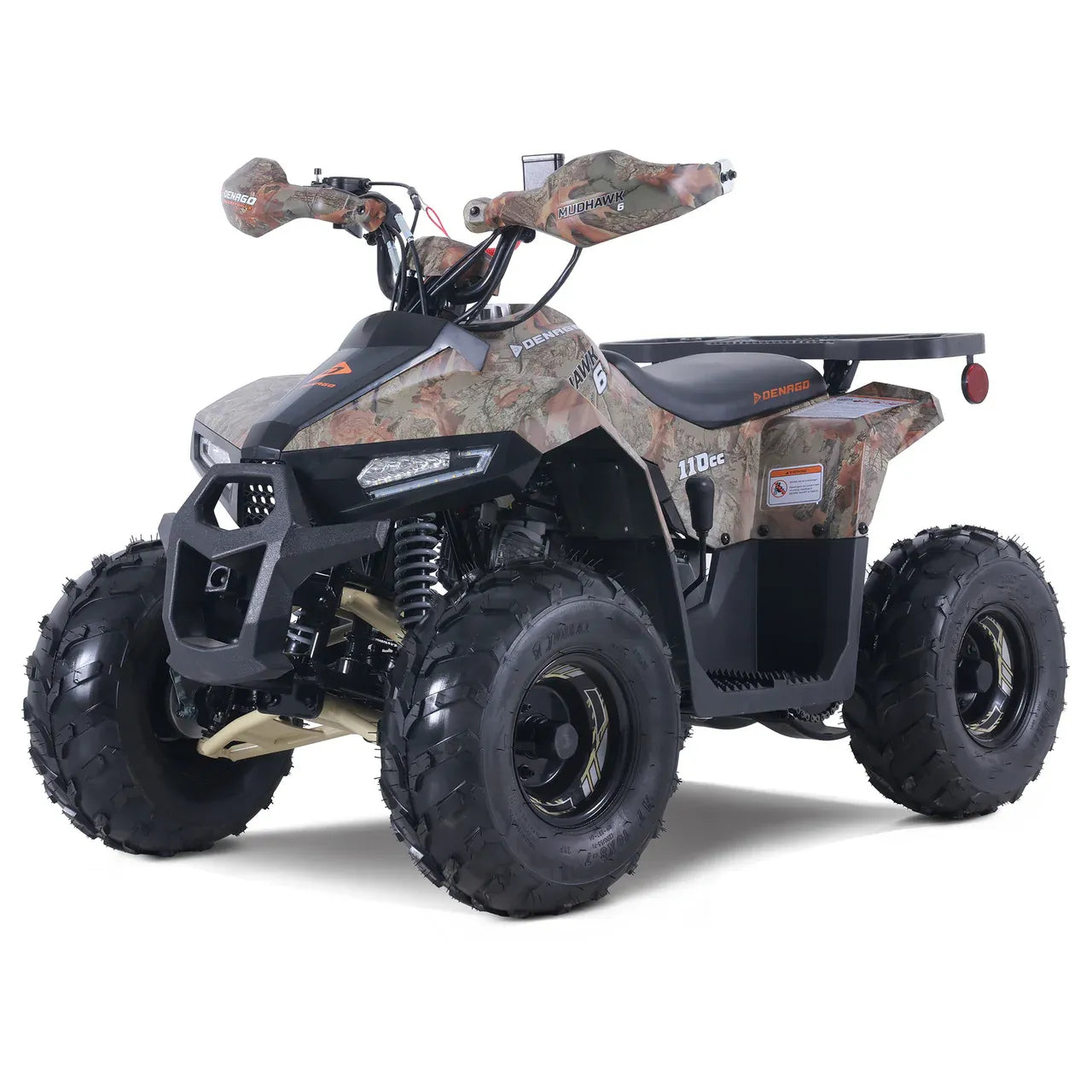 Designed for proper ergonomics, the MudHawk 6 provides a comfortable fit for young riders while offering a fun off-road experience. Its 16×8-7 steel wheels deliver excellent traction across various terrains, and the combination of front drum and rear disc brakes ensures reliable stopping power. Additional features like LED running lights, rear brake lights, and a composite rear rack enhance both safety and utility.