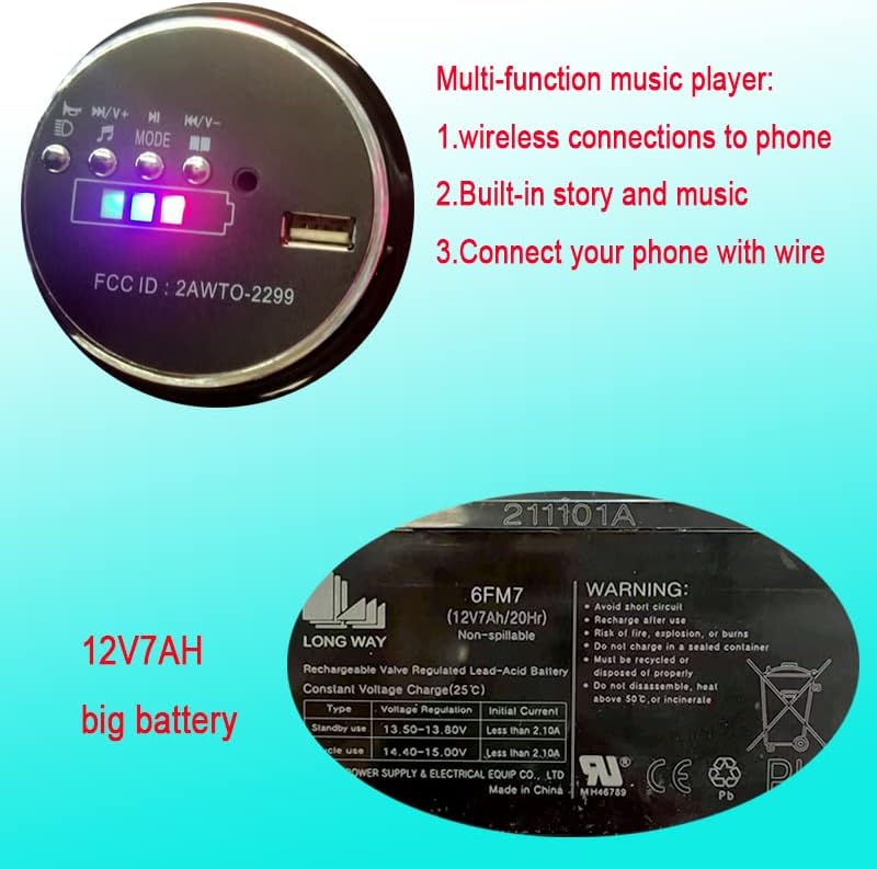 Powered by a 12V rechargeable battery, the T3 runs at a safe speed of 1.8–3.2 mph (3–5 km/h) and offers around one hour of playtime per charge, depending on terrain and rider weight.